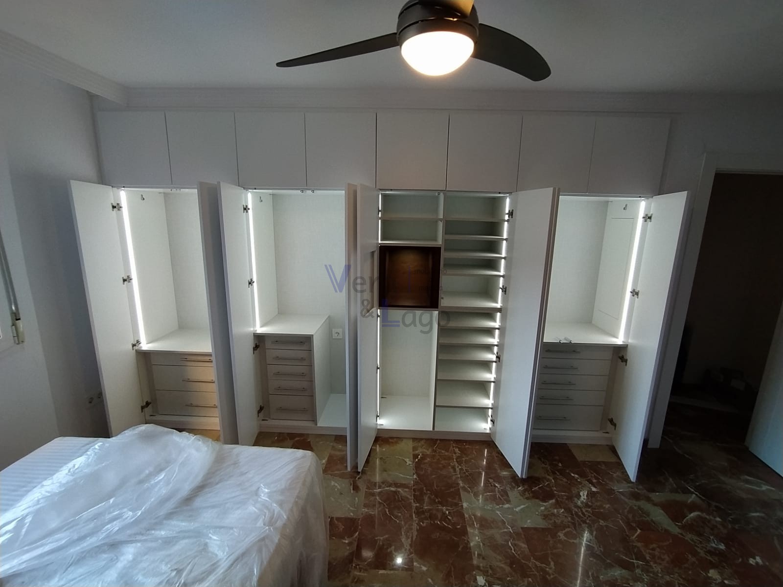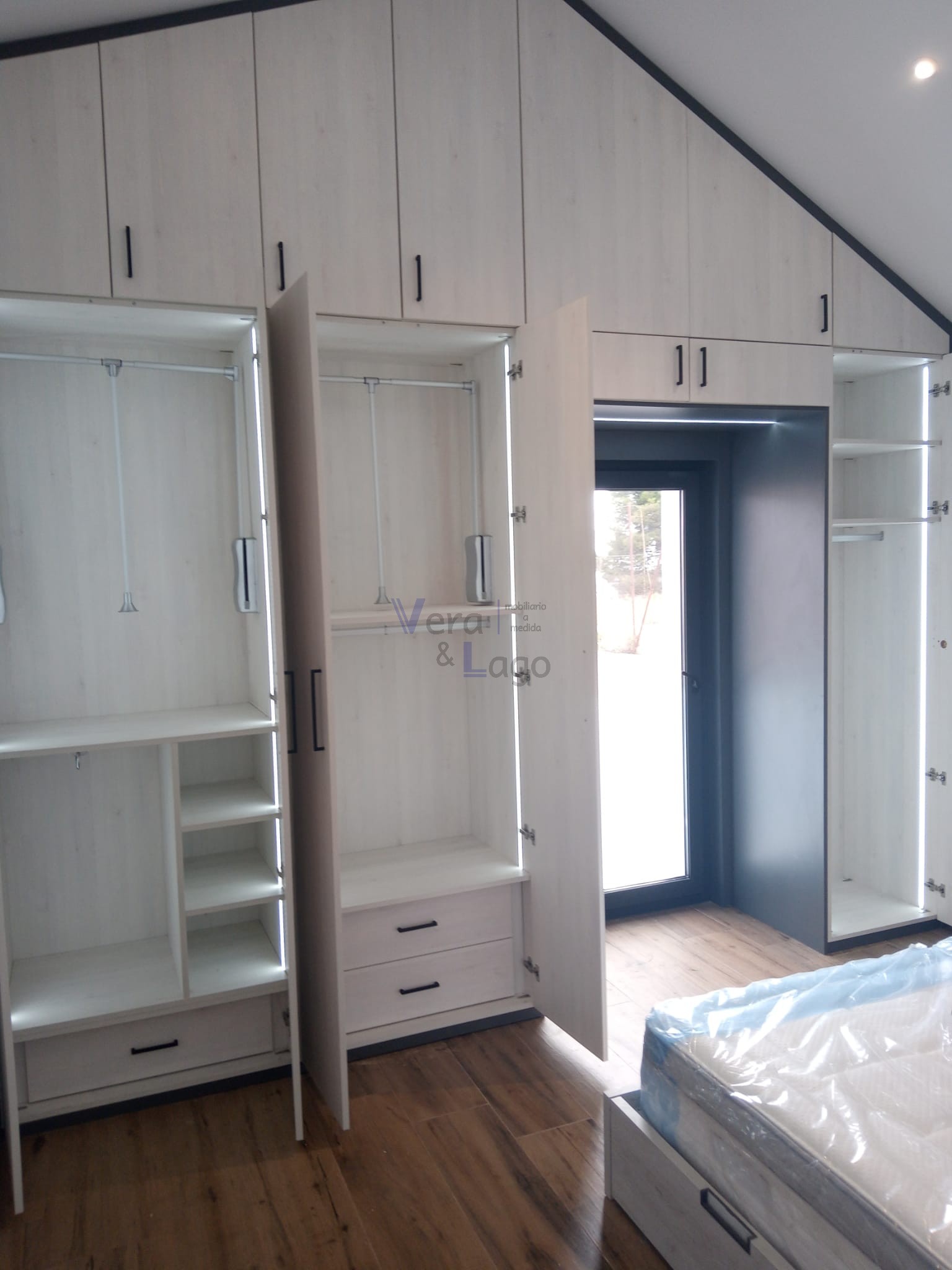 Somos fabricantes de armarios y vestidores a medida además de muebles auxiliares, cabeceros, mesitas de noche, cómodas... Sacamos todo el partido al espacio disponible ya que hacemos recortes de vigas, pilares, techos abuhardillados y descuadres.